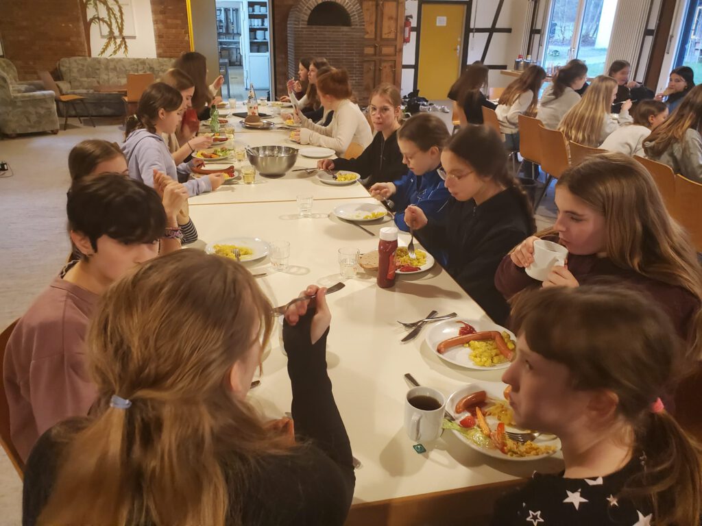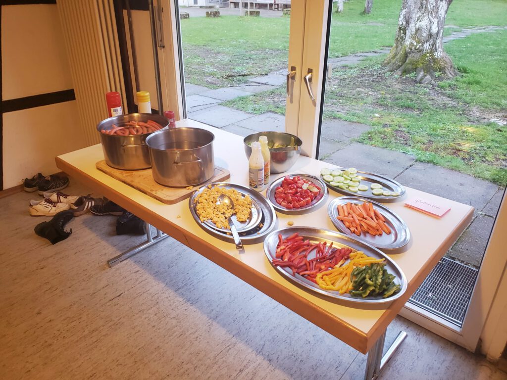 Um 7.30 Uhr waren schon die ersten fleißigen Helfer beim Küchendienst für unser Frühstück im Einsatz, bis es dann um 8 Uhr Frühstück für alle gab.